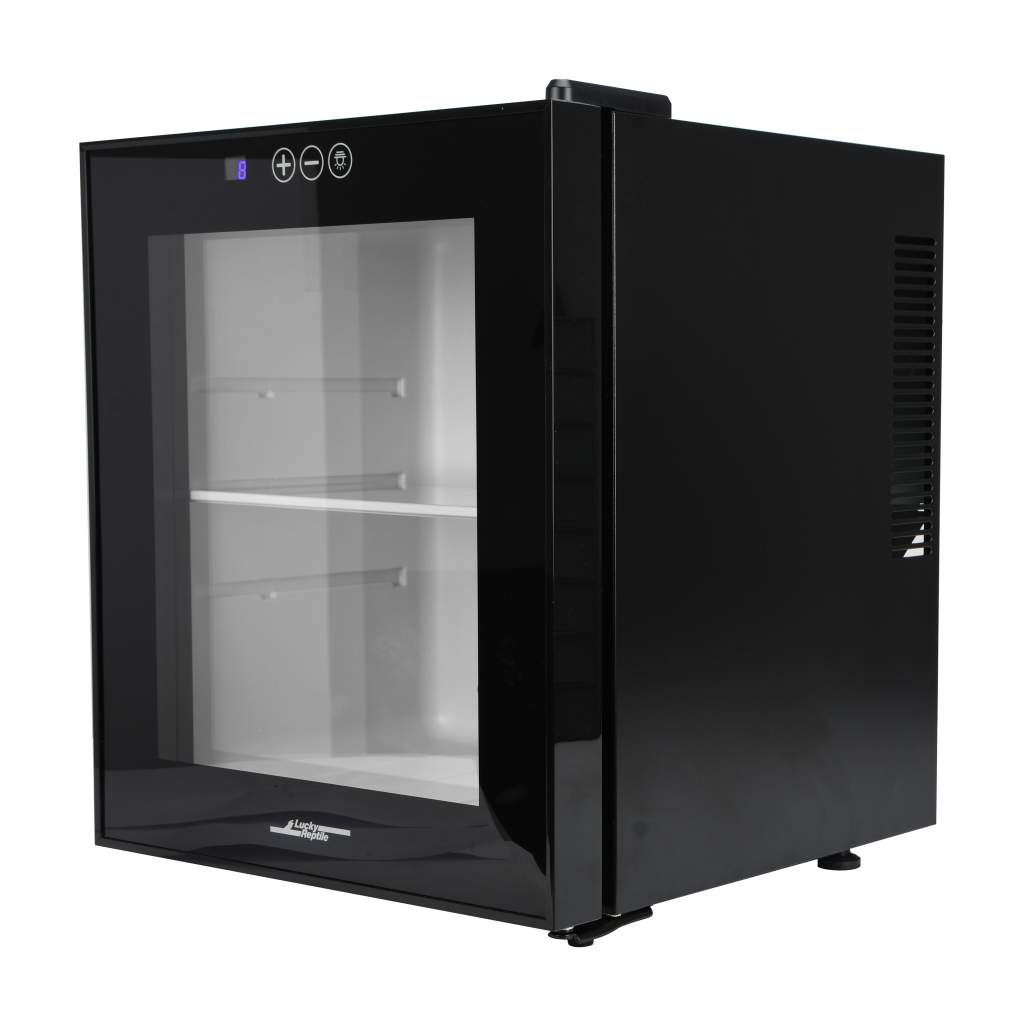 Die Bedienung ist denkbar einfach: Über die Tasten an der Front kann die gewünschte Temperatur im Bereich von 5°C-40°C schnell und unkompliziert eingestellt werden. Durch einen zusätzlichen Batteriespeicher bleibt die eingestellte Temperatur auch bei einem Stromausfall gespeichert. Eine zuschaltbare Innenbeleuchtung erleichtert die Sicht in den Innenraum.