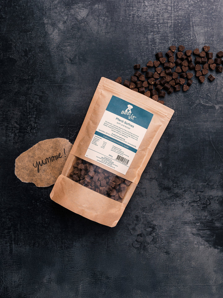 Durch ihre kleine Größe und die weiche Konsistenz sind die Softies besonders praktisch: Sie lassen sich leicht kauen und eignen sich hervorragend für Welpen, kleine Hunde sowie auch für Kitten und Katzen. Pferd als Proteinquelle ist zudem eine beliebte Wahl, wenn Du bei Snacks auf eine bewusste, verträgliche Rezeptur achten möchtest.