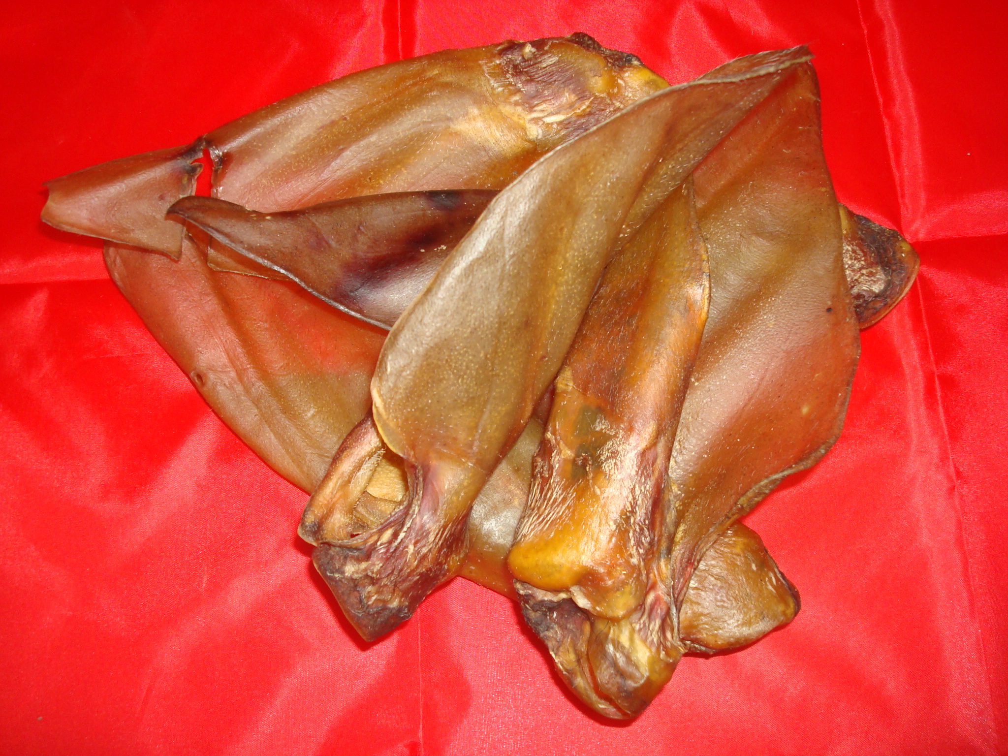 Getrocknete Rinderohren mit oder ohne Muschel je nach Bestand.