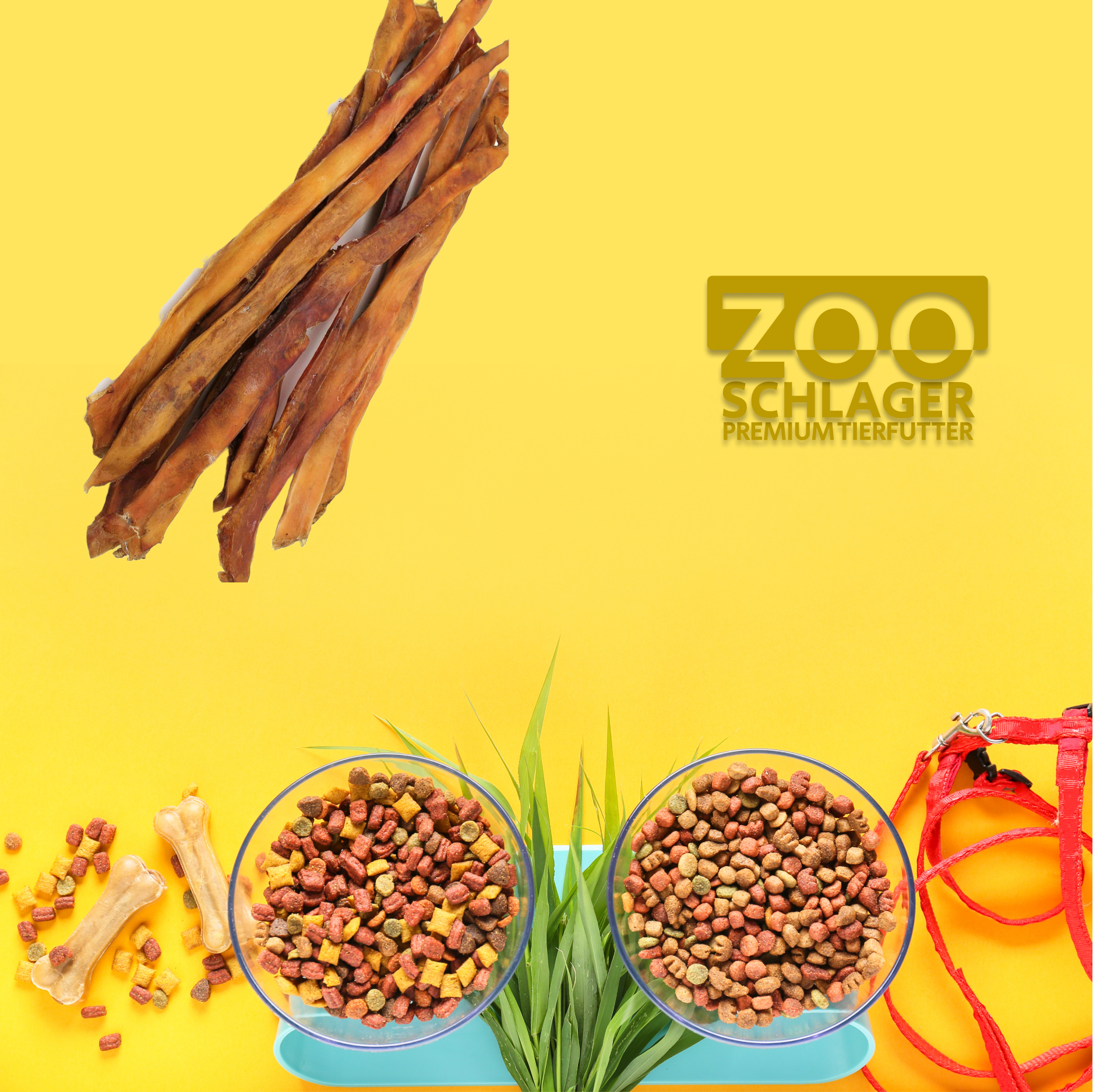 Es handelt sich hierbei um ca. 70 cm lange Kopfhautstangen, welche schonend luftgetrocknet wurden und natürlich aus BSE-freien Beständen stammen. Die Stangen wiegen im Schnitt ca. 180 g.